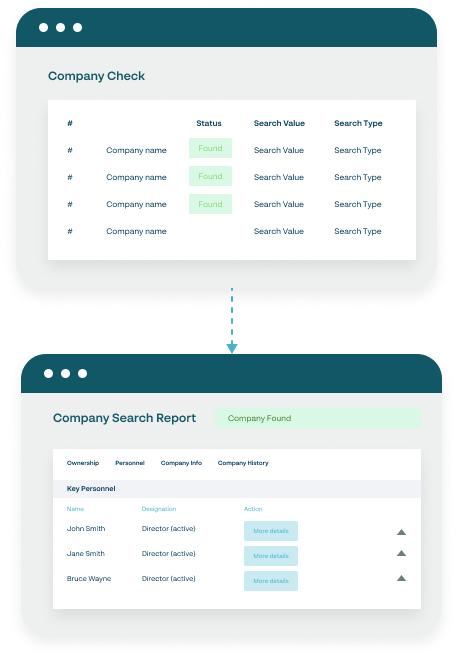 Verify identities of key stakeholders of a business including Ultimate Beneficial Owners (UBOs), Directors, Shareholders and Employees for seamless onboarding and effective risk management.